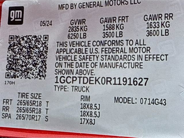 2024 Chevrolet Colorado Z71 Z71 Radiant Red Tintcoat 2.7L I4 Turbocharged DOHC 16V LEV3-ULEV50 310hp 8-Speed Automatic 4WD